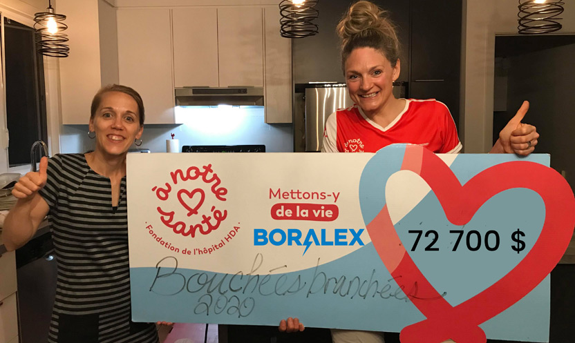 La Fondation À Notre Santé de l’hôpital HDA tenait le 29 mai dernier son tout premier événement virtuel, Bouchées branchées, présenté par Boralex. Des boîtes généreuses ont été livrées aux participants afin qu’ils concoctent dans le confort de leur foyer un délicieux repas gastronomique, le tout assisté en direct par le chef invité M. Michel Camiré. C’est un montant de 72 700 $ net qui a été amassé grâce à la générosité de la population d’Arthabaska et de l’Érable et des nombreux commanditaires. Ce résultat combine le montant des boîtes généreuses vendues, des commandites reçues, de l’encan interactif et du spectacle en direct sur Facebook du groupe Brothers and sun.