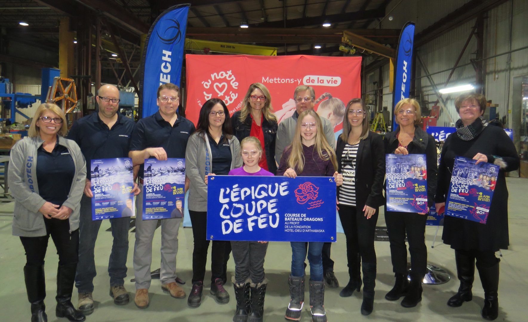 Plessisville, le 14 mars 2018 – La Fondation À Notre Santé de l’hôpital HDA a annoncé ce matin l’ouverture de la période d’inscription pour la 4e édition de l’ÉPIQUE COUPE DE FEU – Course de bateaux-dragons. L’événement, présenté par Carbotech, sous la présidence d’honneur de leur président M. Luc Houde, se tiendra le 9 juin prochain au Parc du réservoir Beaudet à Victoriaville. La journée se déroulera sous la même formule que les années précédentes et la Fondation souhaite l’inscription de 30 équipes. L’objectif financier est fixé à 100 000 $ et une nouveauté est attendue : le volet jeunesse.