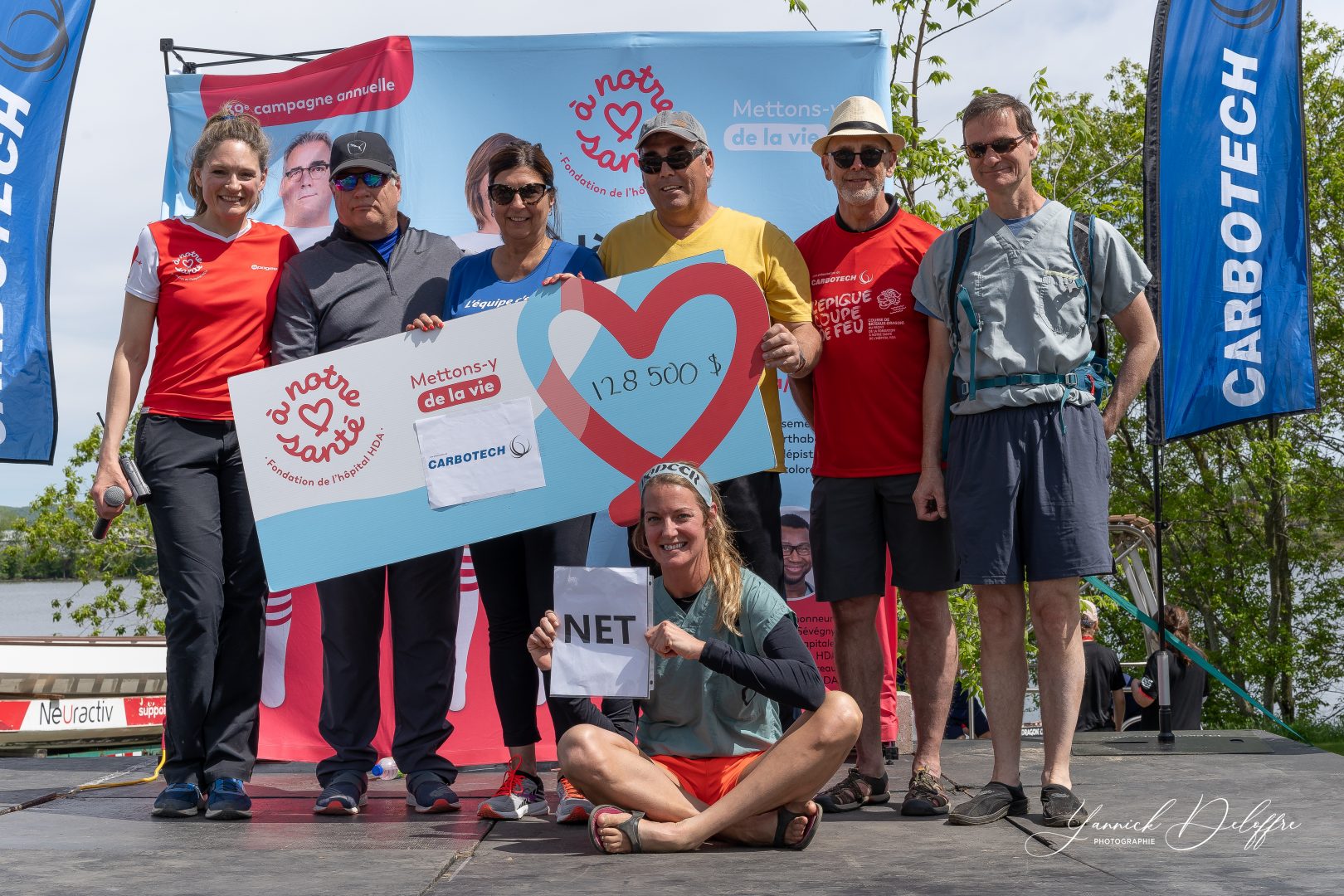 Victoriaville, le 8 juin 2019 – C’est samedi dernier que s’est tenue la 5e édition de L’ÉPIQUE COUPE DE FEU – Course de bateaux-dragons au Parc du Réservoir Beaudet. L’événement, présenté pour la deuxième année consécutive par Carbotech, a amassé le montant net de 128 500 $ net. Ce montant servira directement à la prévention et l’amélioration du dépistage précoce du cancer colorectal et à l’amélioration des soins pédiatrique à l’hôpital HDA. Sous la présidence d’honneur de M. Luc Houde de Carbotech, l’événement de la Fondation À Notre Santé de l’hôpital HDA a mobilisé 40 équipes pour le volet adulte ainsi que cinq équipes pour le volet jeunesse.