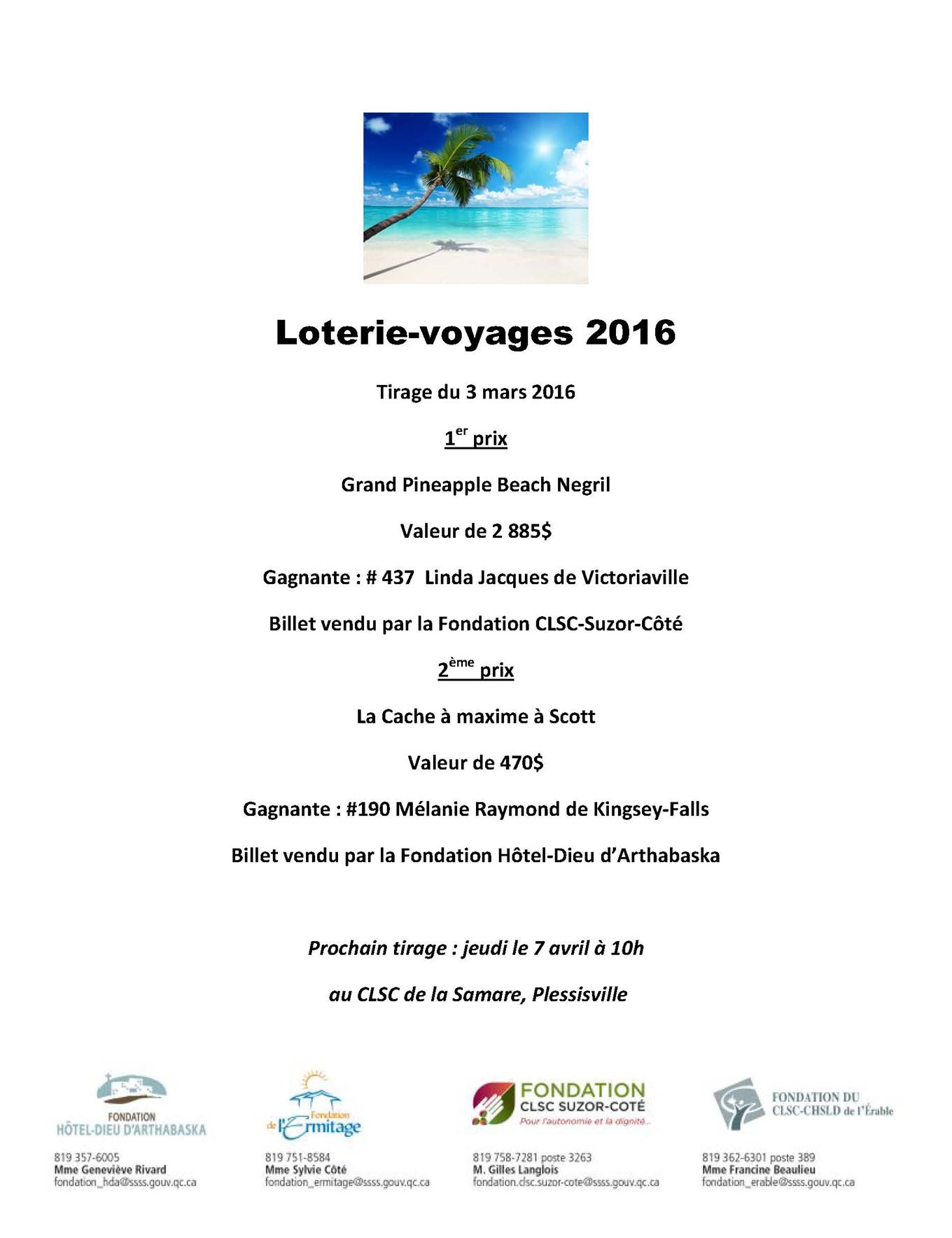 LOTERIE-VOYAGES – FONDATIONS DU TERRITOIRE ARTHABASKA-ÉRABLE