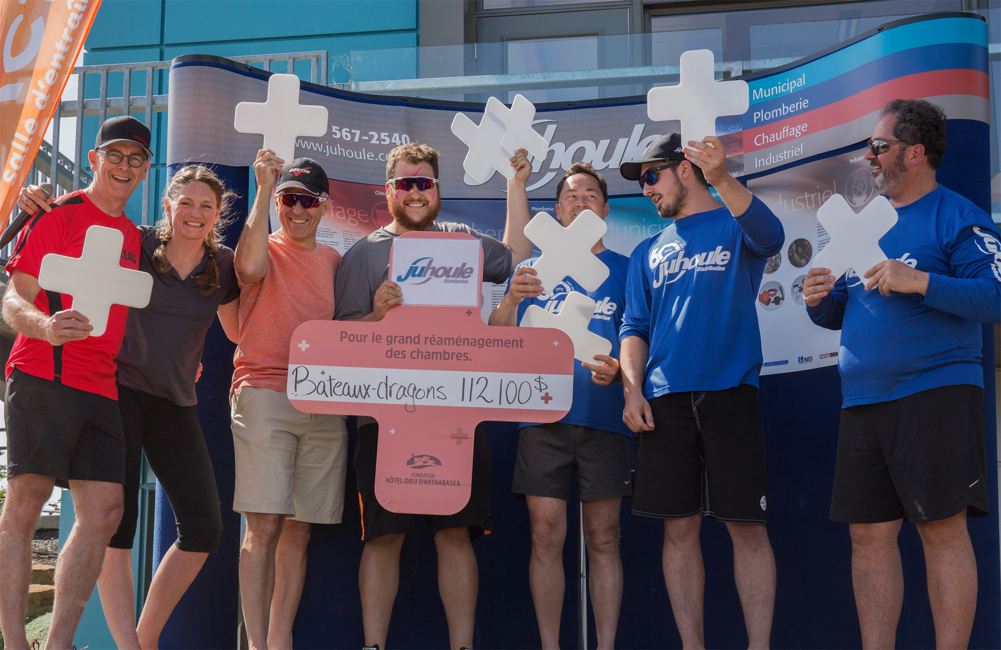 Victoriaville, le 10 juin 2017 – L’ÉPIQUE COUPE DE FEU – Course de bateaux-dragons présentée par J.U. Houle Ltée, fier partenaire de l’événement, en était à sa 3e édition, ce week-end au Réservoir Beaudet de Victoriaville. Sous la présidence d’honneur de MM. Pierre et Laurent Houle de l’entreprise familiale J.U. Houle Ltée, cette activité sportive d’envergure a permis de mobiliser un total de 30 équipes et d’amasser une rondelette somme de 112 100 $ pour la Fondation Hôtel-Dieu d’Arthabaska.